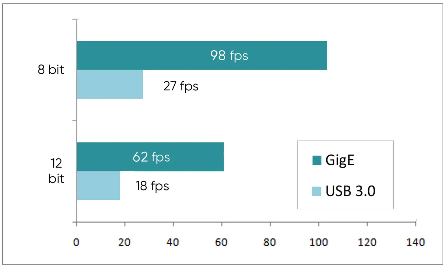 - Frame Rate: 98 fps @ 8 bit, 65 fps @ 10 bit, 62 fps @ 12 bit